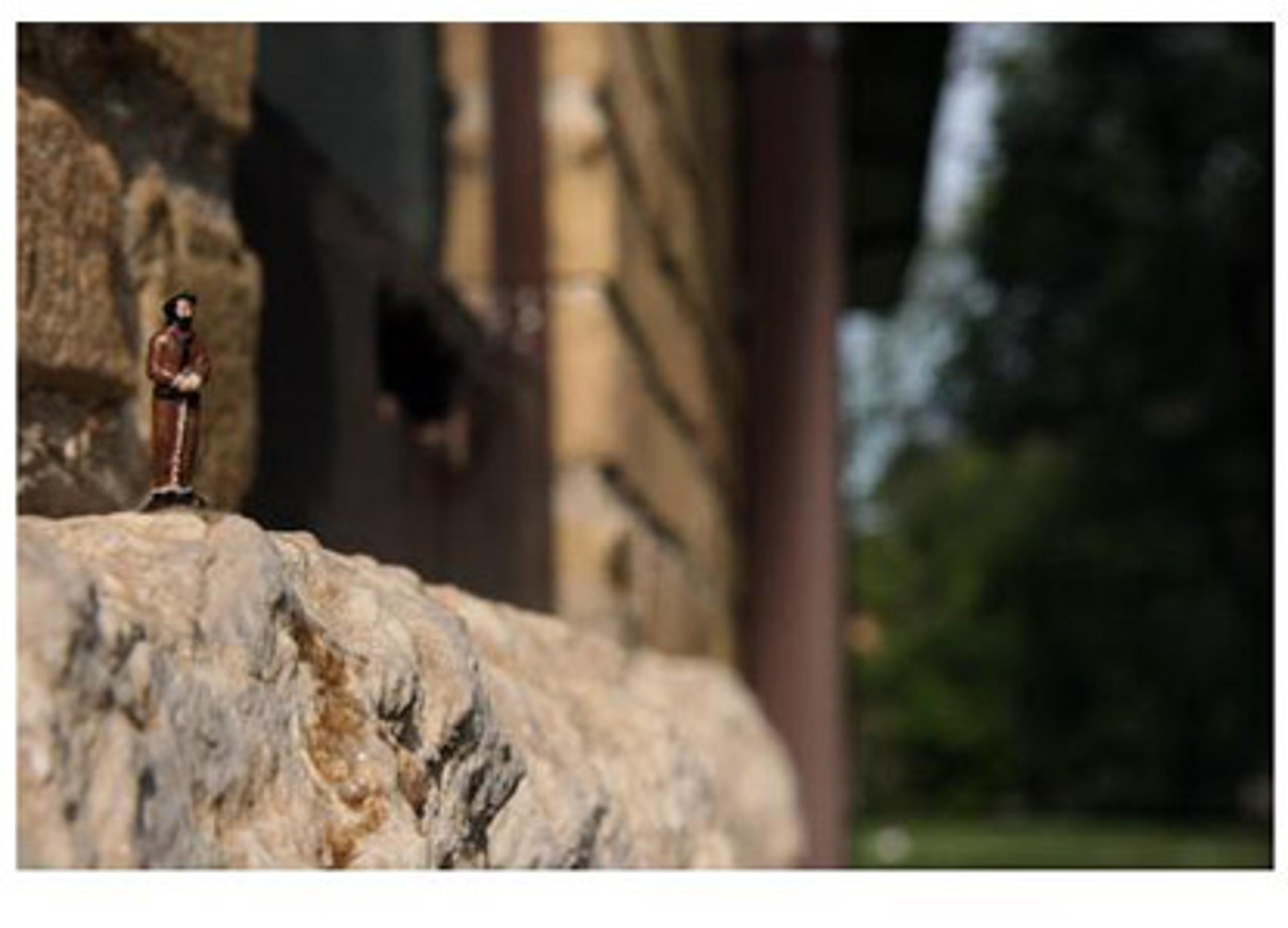 Part of the Dewdney Avenue Project in Regina, artist Terrance Houle picked five sites along the avenue and constructed miniature re-enactments of significant aboriginal events in the city. Houle used “HO-scale figures, painted to look like Riel, RCMP officers, modern day Indians, and wild buffalo. He set up the figures in front of a site, photographed the scene and then left the miniature open-air dioramas behind, to be found by passersby”.