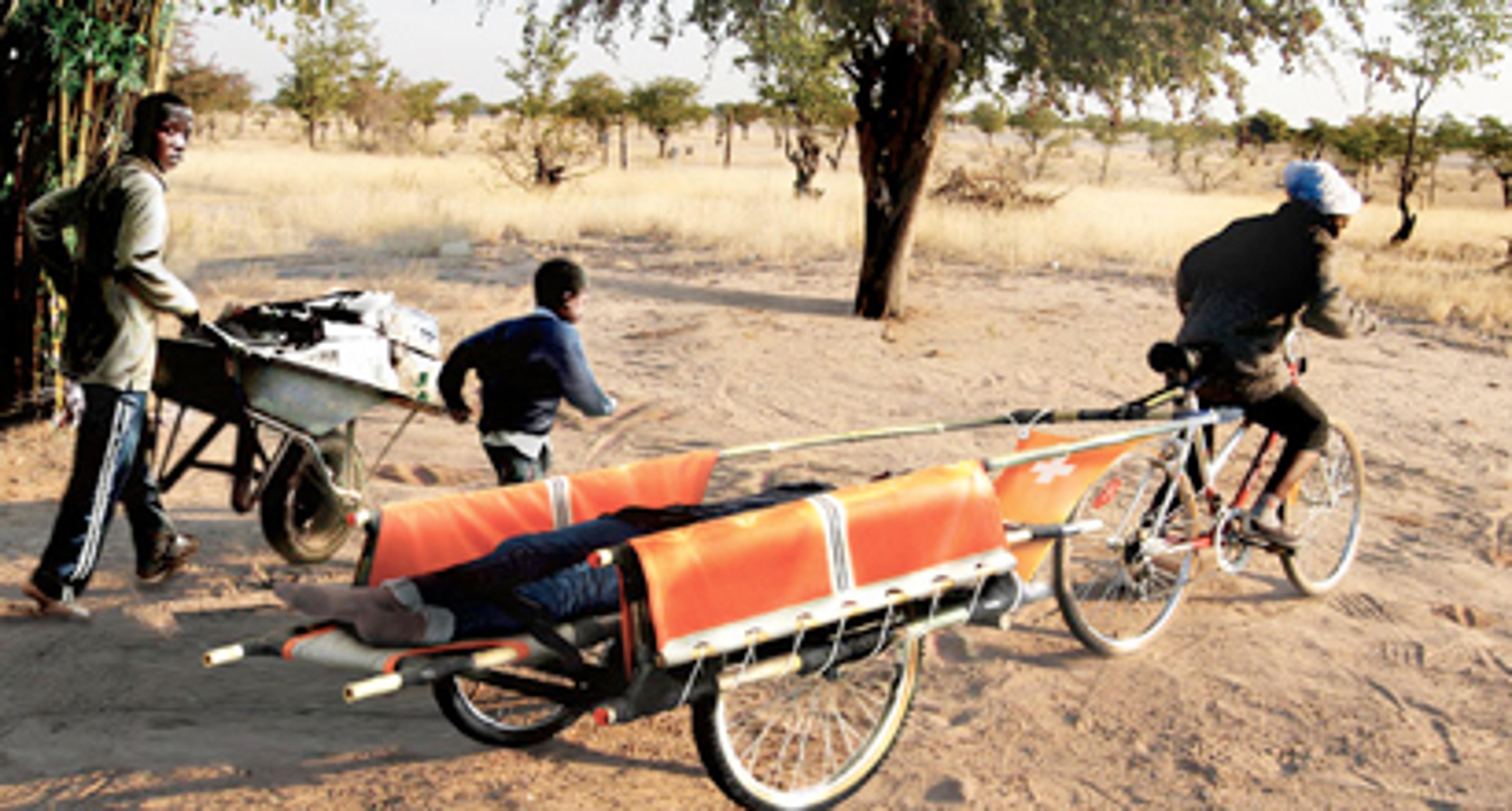[Niki Dun created the Bicycle Ambulance in 2003](http://canadiandesignresource.ca/?p=1123), to provide emergency transportation to underserviced communities in rural sub-saharan Africa. The project lead to the creation of the Design for Development Society, a non-profit which is currently coordinating the production of more than sixty Bicycle Ambulances in Namibia. Building on Dun’s innovative solution, Philippa Mennell and Chris Ryan (at the time, students at Emily Carr University) worked with Design for Development and community partners in Kenya to create the Bambulance – a bicycle ambulance constructed from bamboo and other locally available materials.