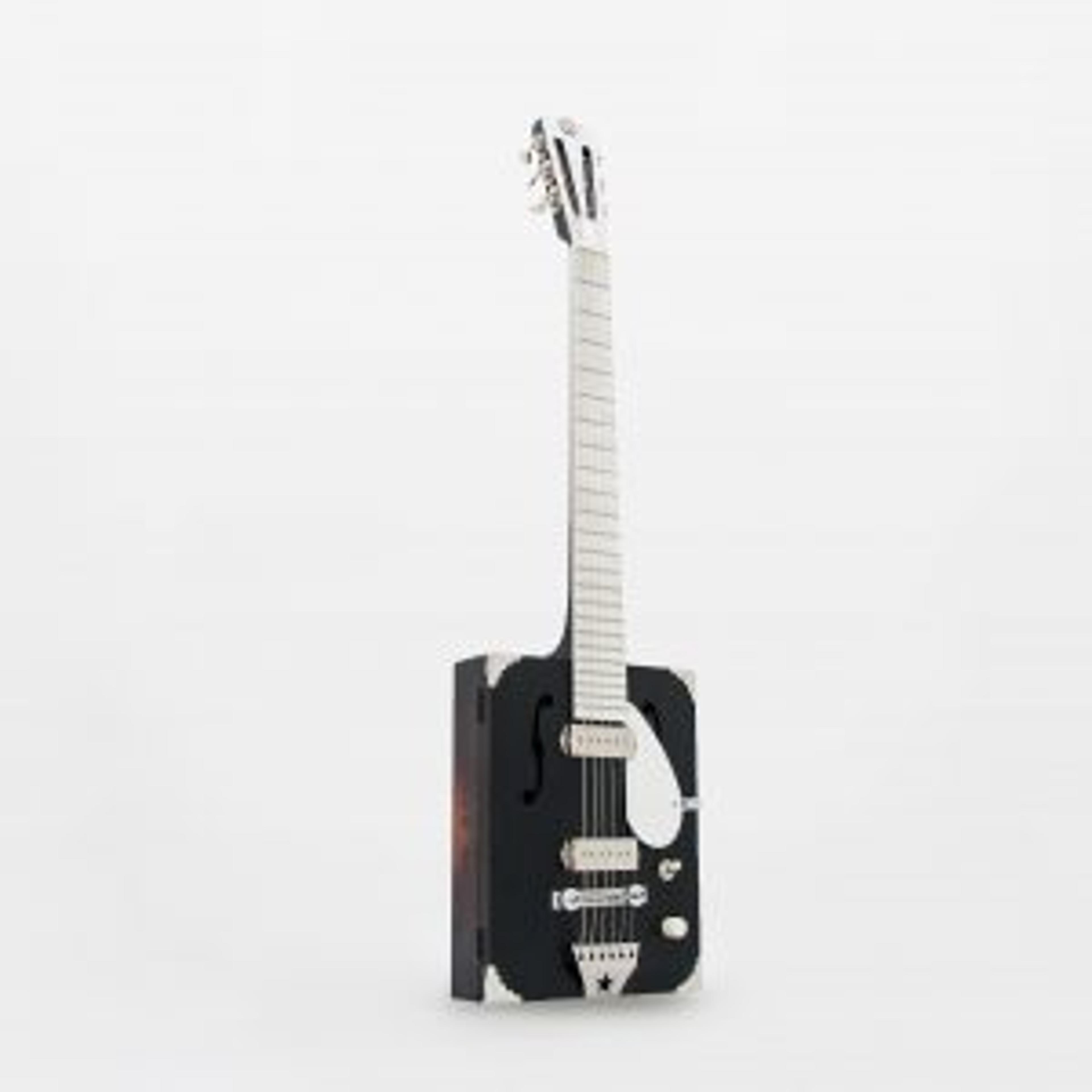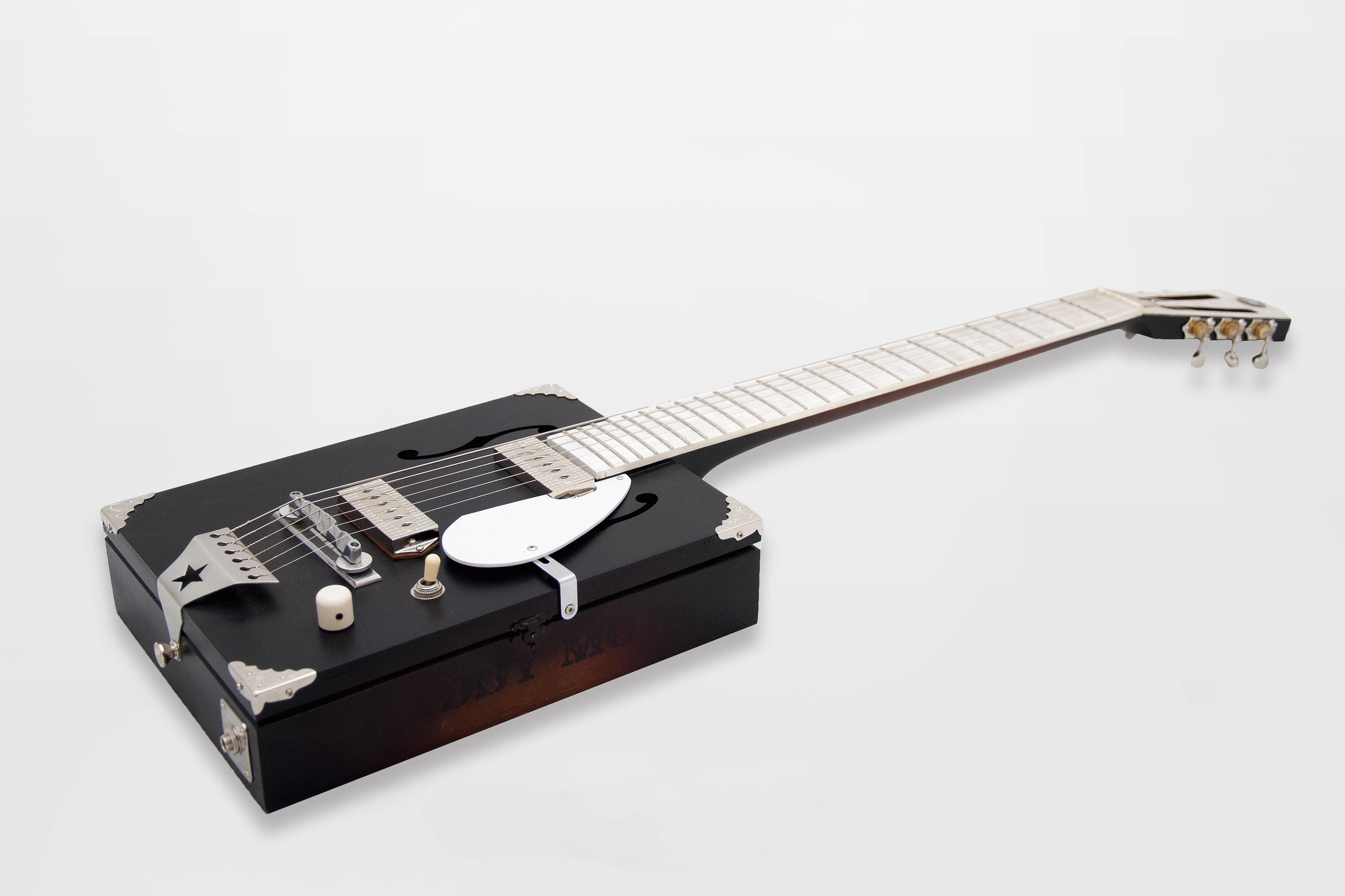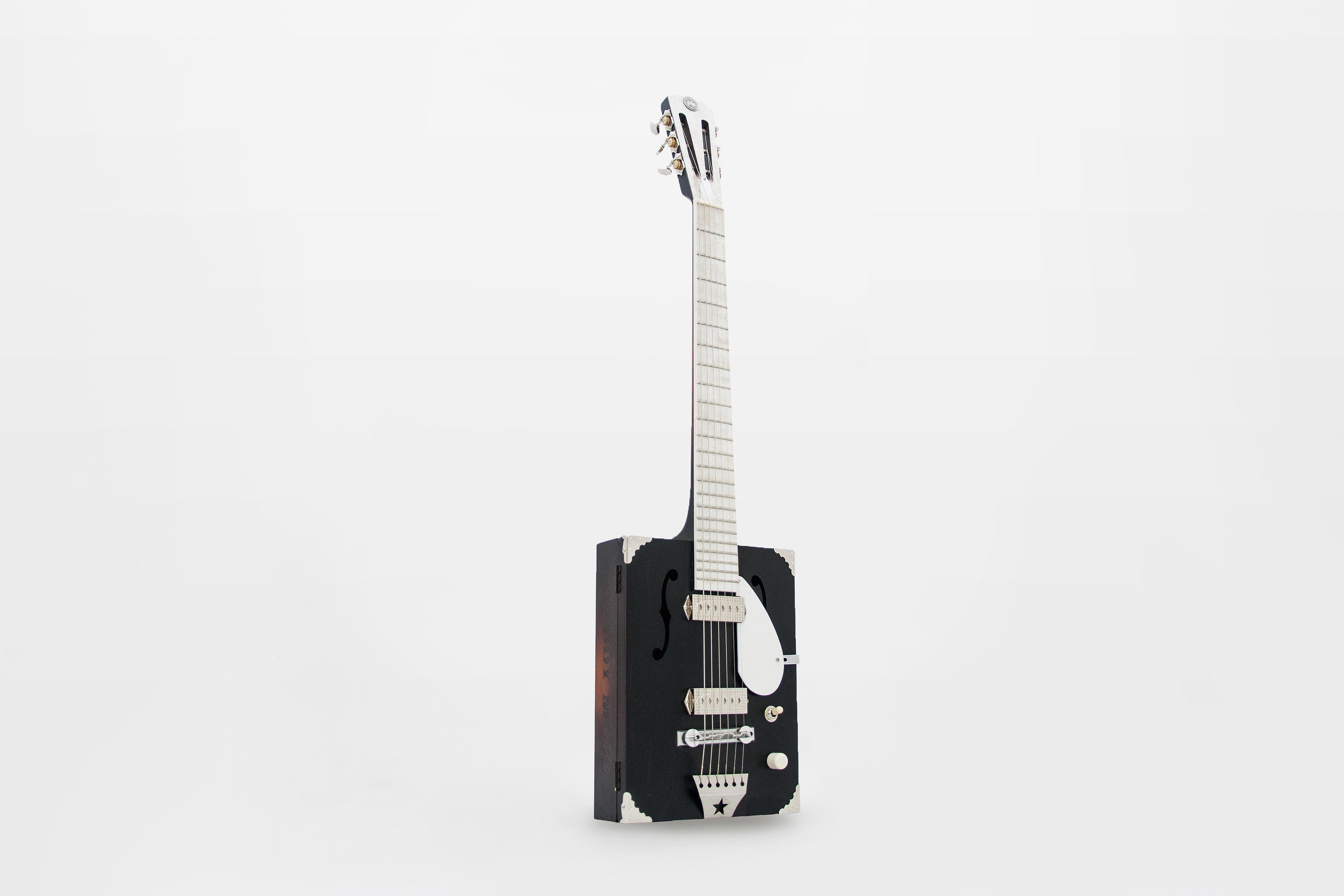 the Tuxedo model features a brushed matte black body with chrome hardware and mother of pearl fingerboard & headstock overlay. With its set-neck construction, proprietary MOJO pickups (custom pick-up covers designed in-house) and its elegant slotted headstock, the instrument is a cut above anything we’ve put out there before. The DM Tuxedo just oozes sophistication.