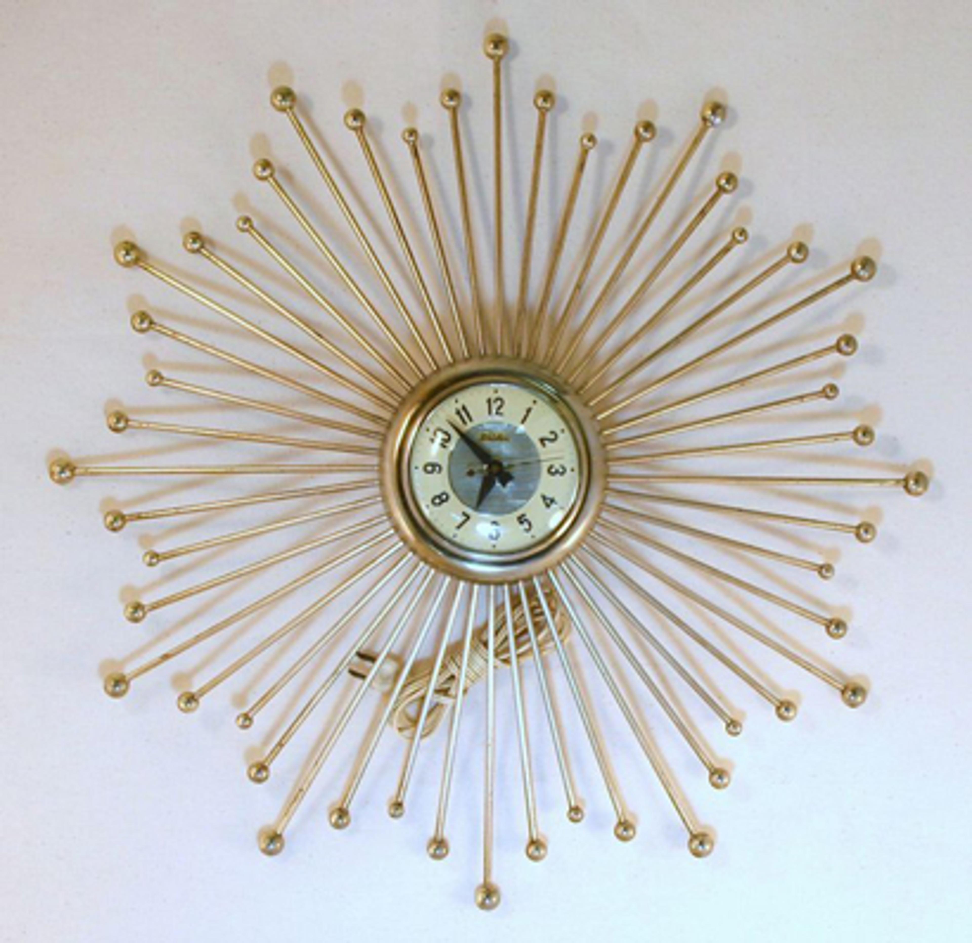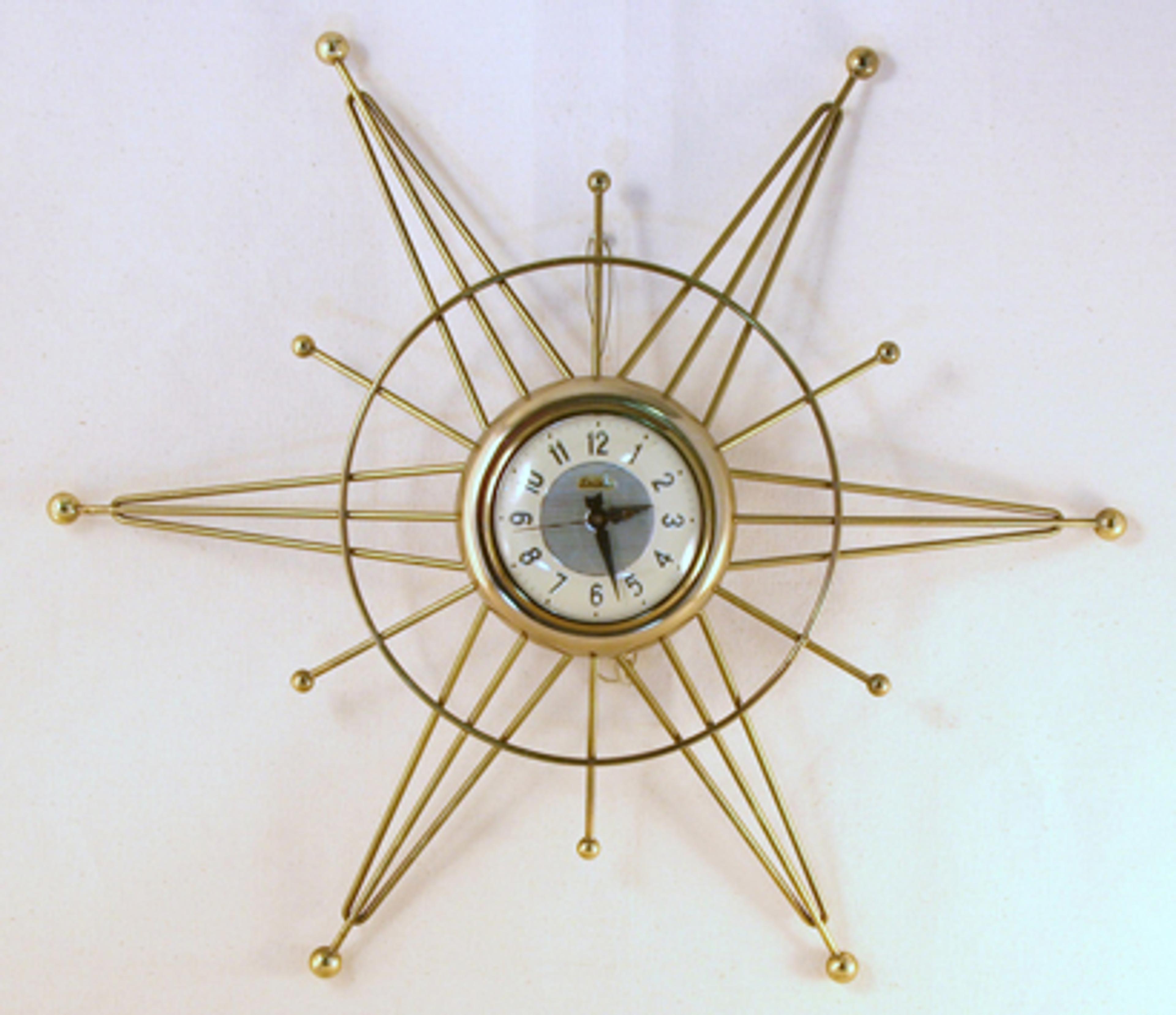 These early Snider ‘Starburst’ clocks would have competed with similar designs by American owned rivals Westclox and [Ingraham](http://canadiandesignresource.ca/?p=5748). As you can see, the body of both clocks is the same, but Snider was able to create many different styles, simply by varying the pattern of brass plated rods. Later, Snider created special assembly jigs to increase efficiency and achieved even greater design variation by incorporating wood and bent metal elements.