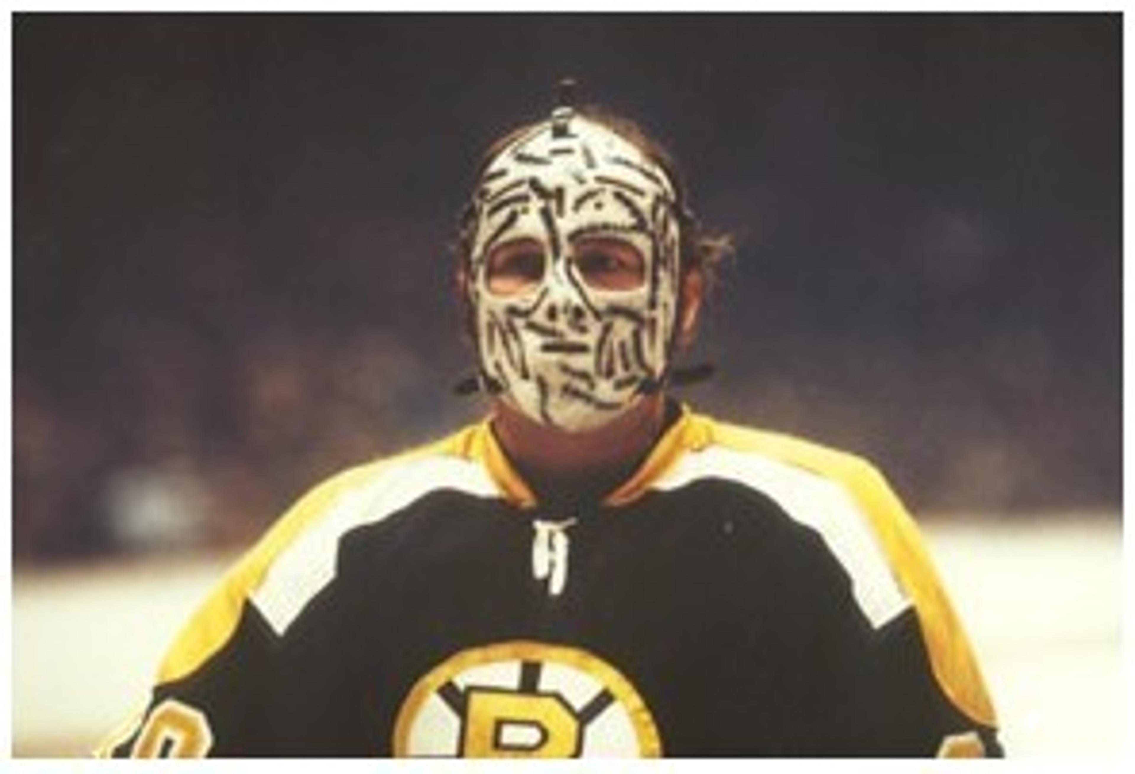 “Well, when the mask first became a reality in the game of hockey, the first ones were all plain white and I hated wearing anything white. It was to me a sign of purity and I wasn’t in a pure business as far as I was concerned, and…one day this puck flipped up and hit me in this new white mask I had. I went to the dressing room, and Harry Sinden, who was coaching, came in and painted a big 12-stitch cut on my mask and I got a chuckle out of that and we went from there. A very, very simple thing happened there but maybe, just maybe I was the pioneer in the art of decorations of masks. That’s what I’d like to think about it.”