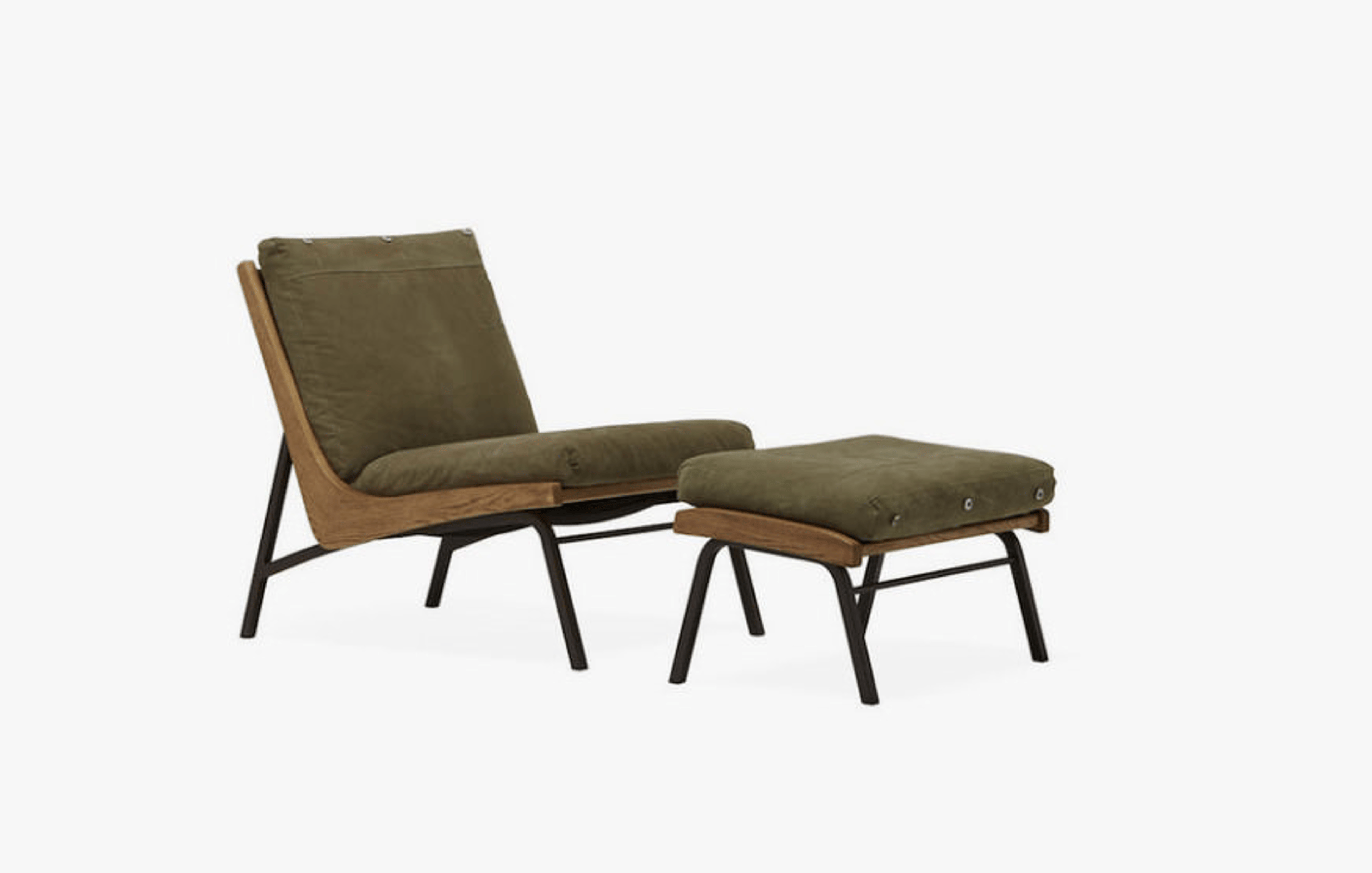 Now, Stephen Kenn and Tokuhiko Kise of Truck Furniture have collaborated to make three pieces of unique furniture. Two sofas in Stephen’s Inheritance Collection design style, using two signature Truck materials: olive green wide wale corduroy and a dusty brown leather. The third piece in the collaboration is the Truck Furniture Boomerang Chair + Ottoman, upholstered with Stephen Kenn’s signature vintage military canvas. Made with Stephen’s vintage military canvas, and based on the original Truck Furniture design.