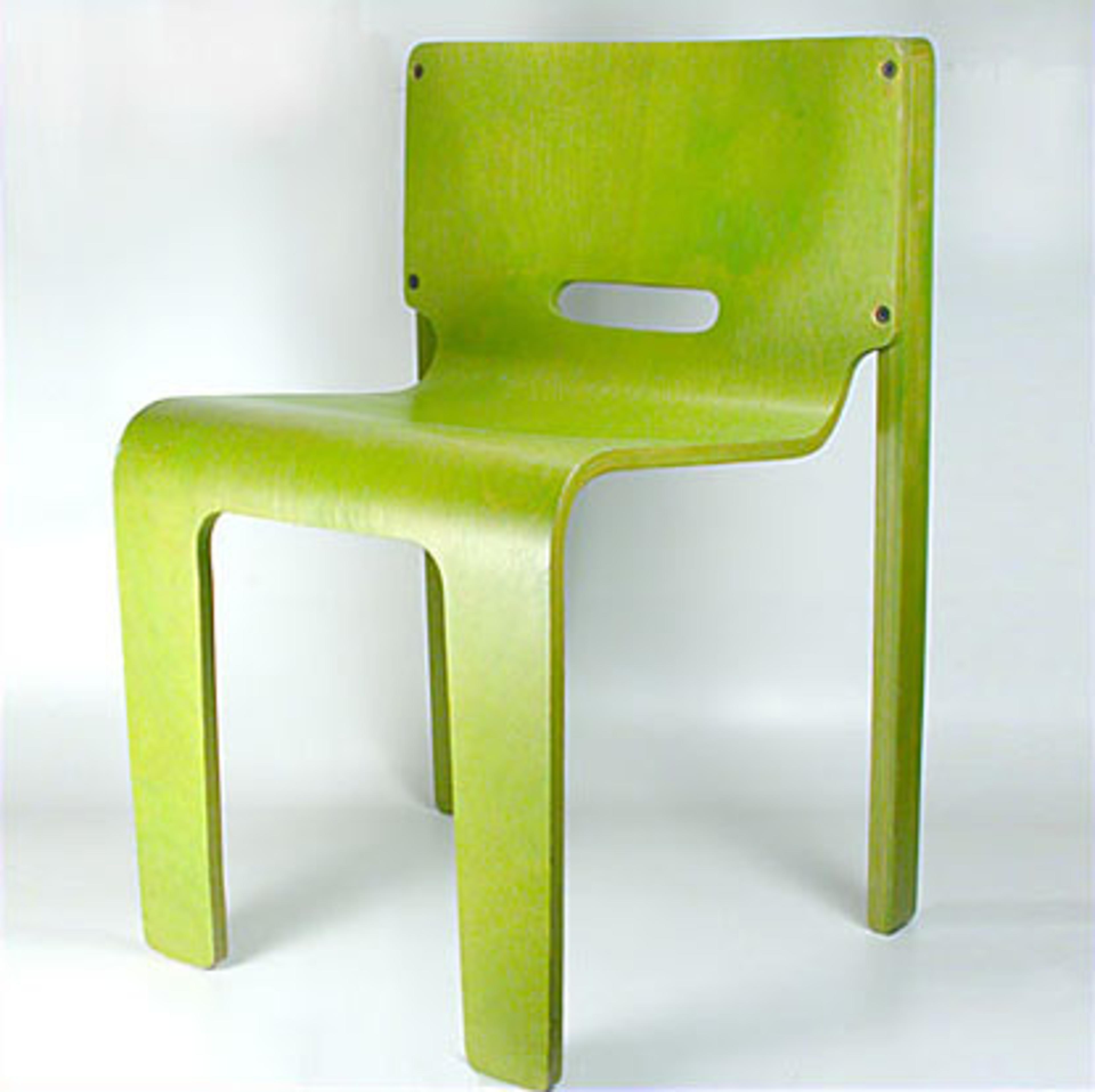 These things are entirely subjective, but to me, this is THE archetypal bent ply chair. Certainly, there are more elegant designs (Charles and Ray Eames and Arne Jacobson come to mind, though their all-wood creations never achieved the same elegance as those with steel legs) and more groundbreaking/original forms (Alvar Aalto, Thomas Lamb, Frank Gerry, etc.), but none of these classic designs achieved the same ease and familiarity. With plywood and four screws, Muller and Stewart created a chair that is both strikingly honest and highly functional: comfortable, durable and stackable.