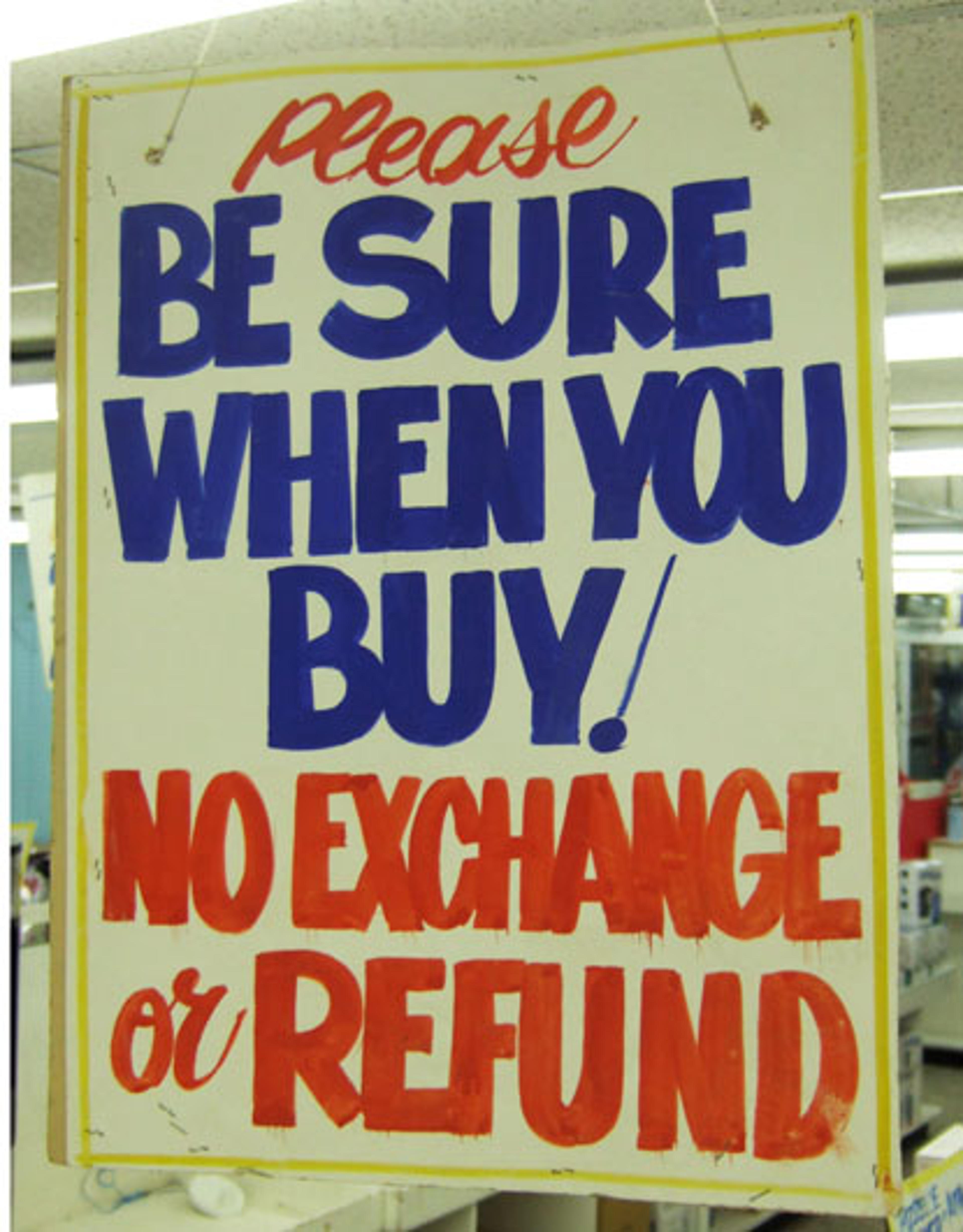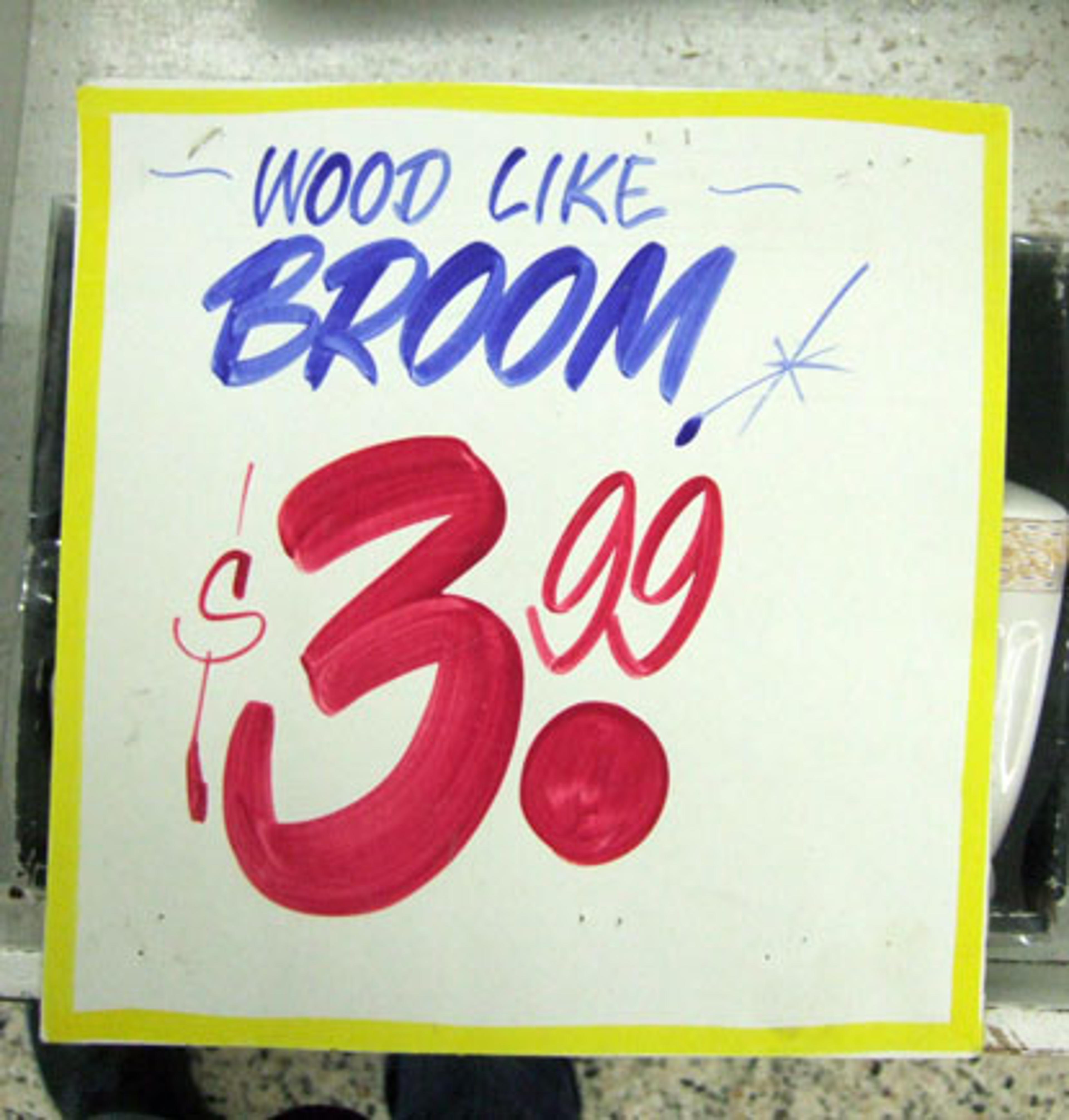 Design is about experience and when you walk into Honest Ed’s you are confronted with an ocean of these little signs dangling from overhead. Everything, it seems, has one of these painted labels, creating a warm feeling of the handmade, and a charming old school experience (the comments on them are so fitting, with references like “pinching pennies”, etc). All of this combines into a solid positioning, and identity of Honest Ed’s…even his signage is honest and unmasked. The fact that Reuben is employed at all, demonstrates that this retailer cares about the impression they make, and understand that this typographic style generates a unique customer experience, helping the store to stand out from the coolness of other retailers (Nike Store), or the utter lack of design (The Bay) and the bleakness of efficient design (Wal-Mart).