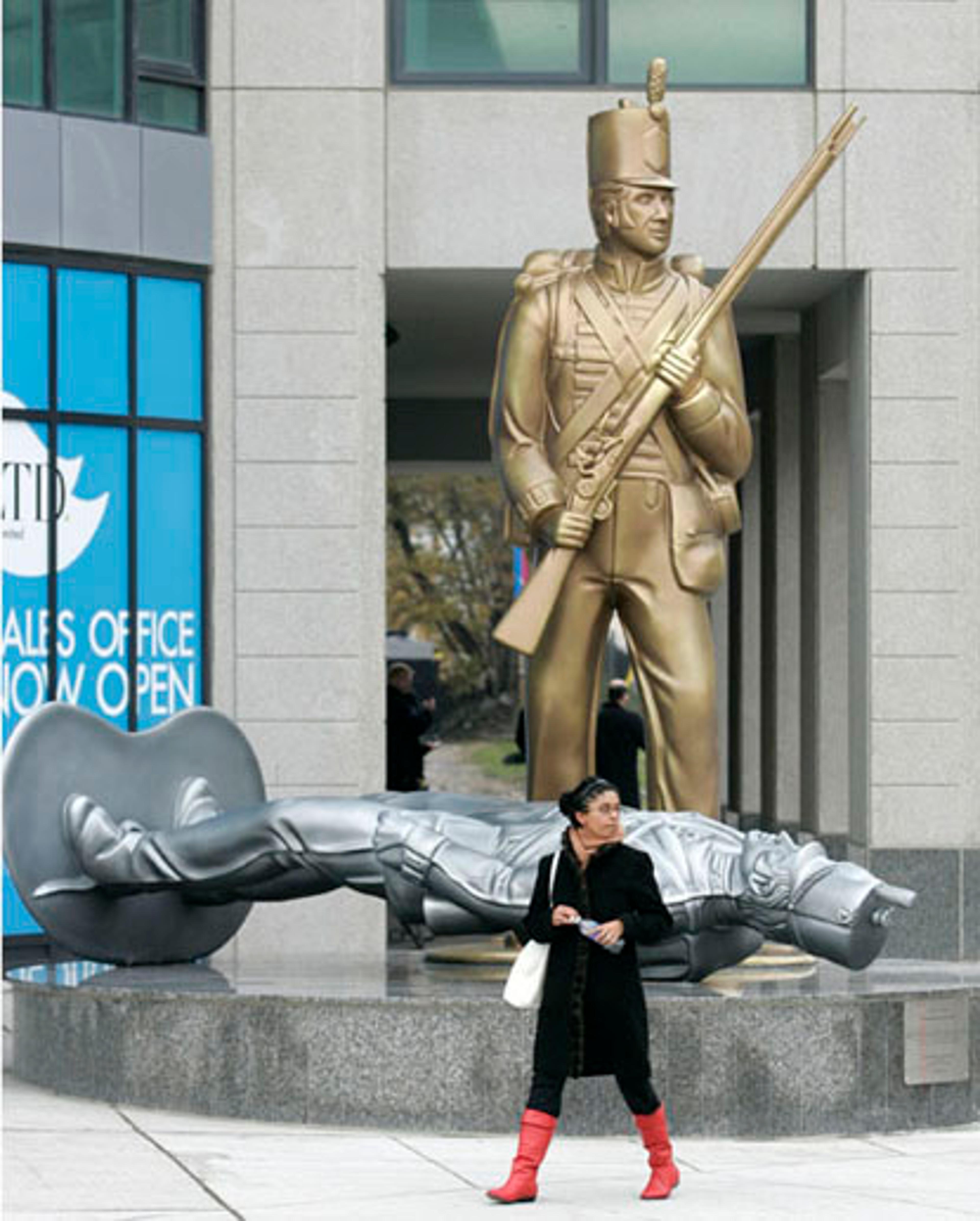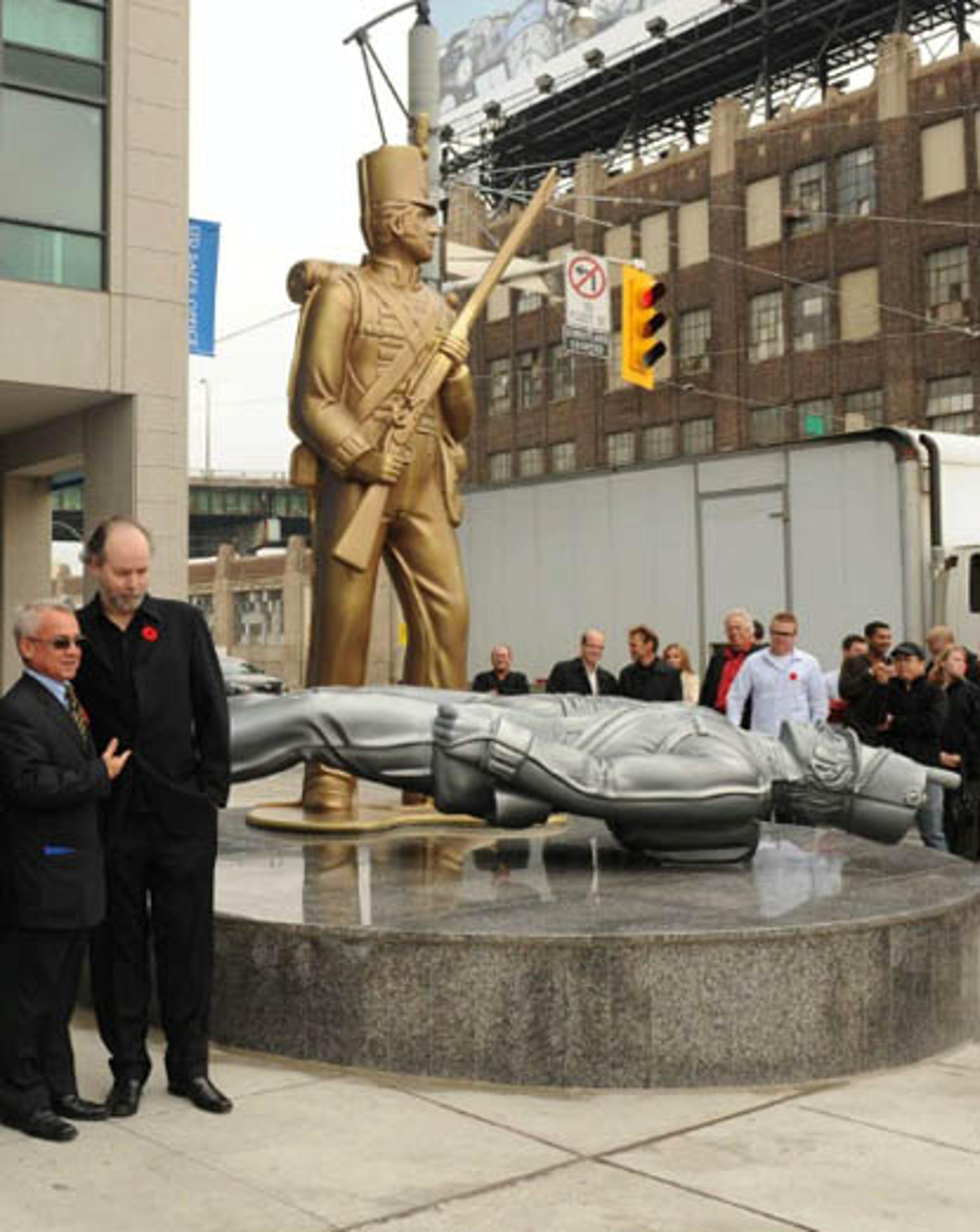 A provocative new monument in downtown Toronto that “gently” reminds onlookers who won the War of 1812 shows a giant British toy soldier towering over a toppled American figurine.