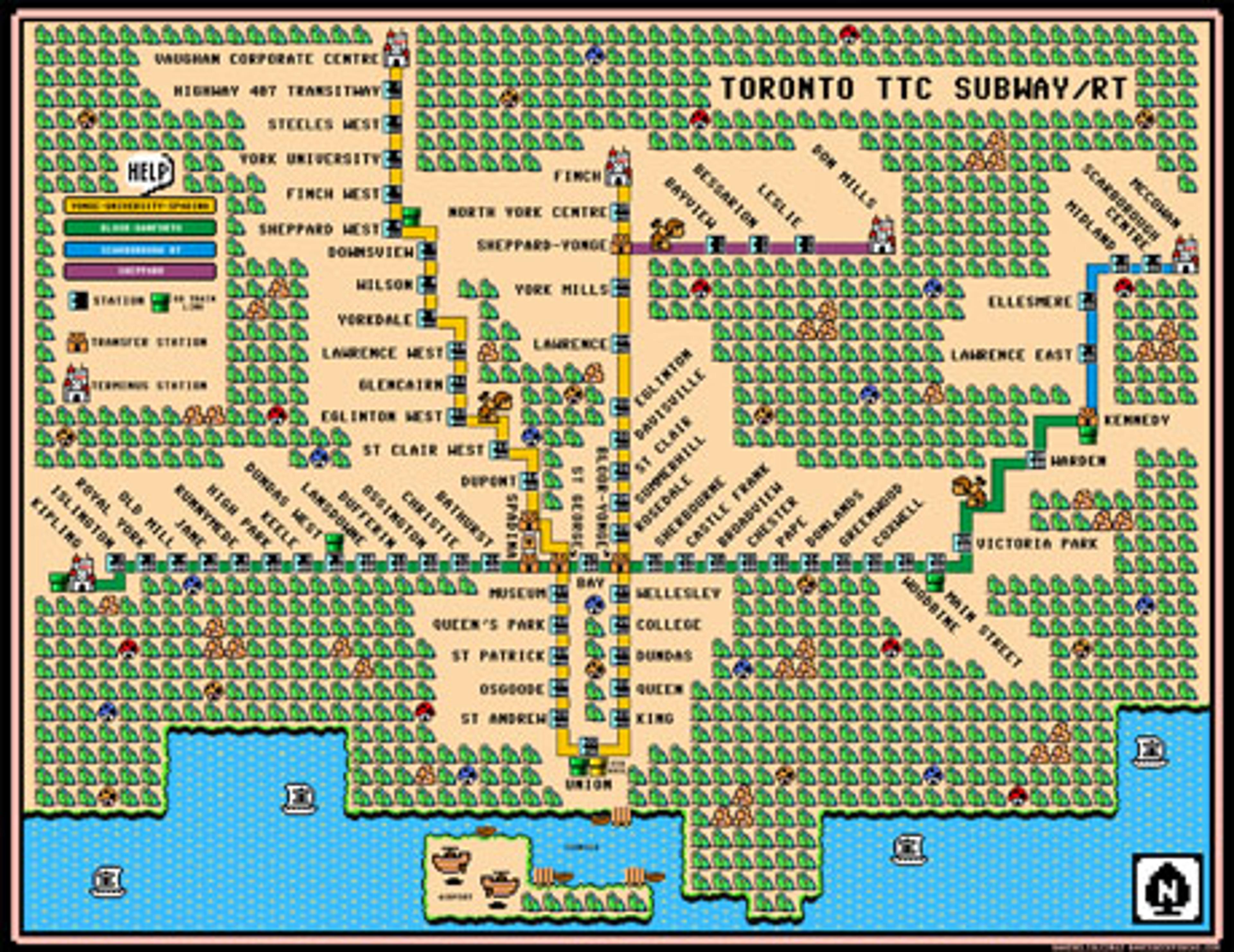 Toronto TTC Subway/RT Map – Super Mario 3 Style — The Nor Collection | Nor